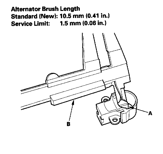 13. Measure the length of both brushes (A) with vernier calipers (B).