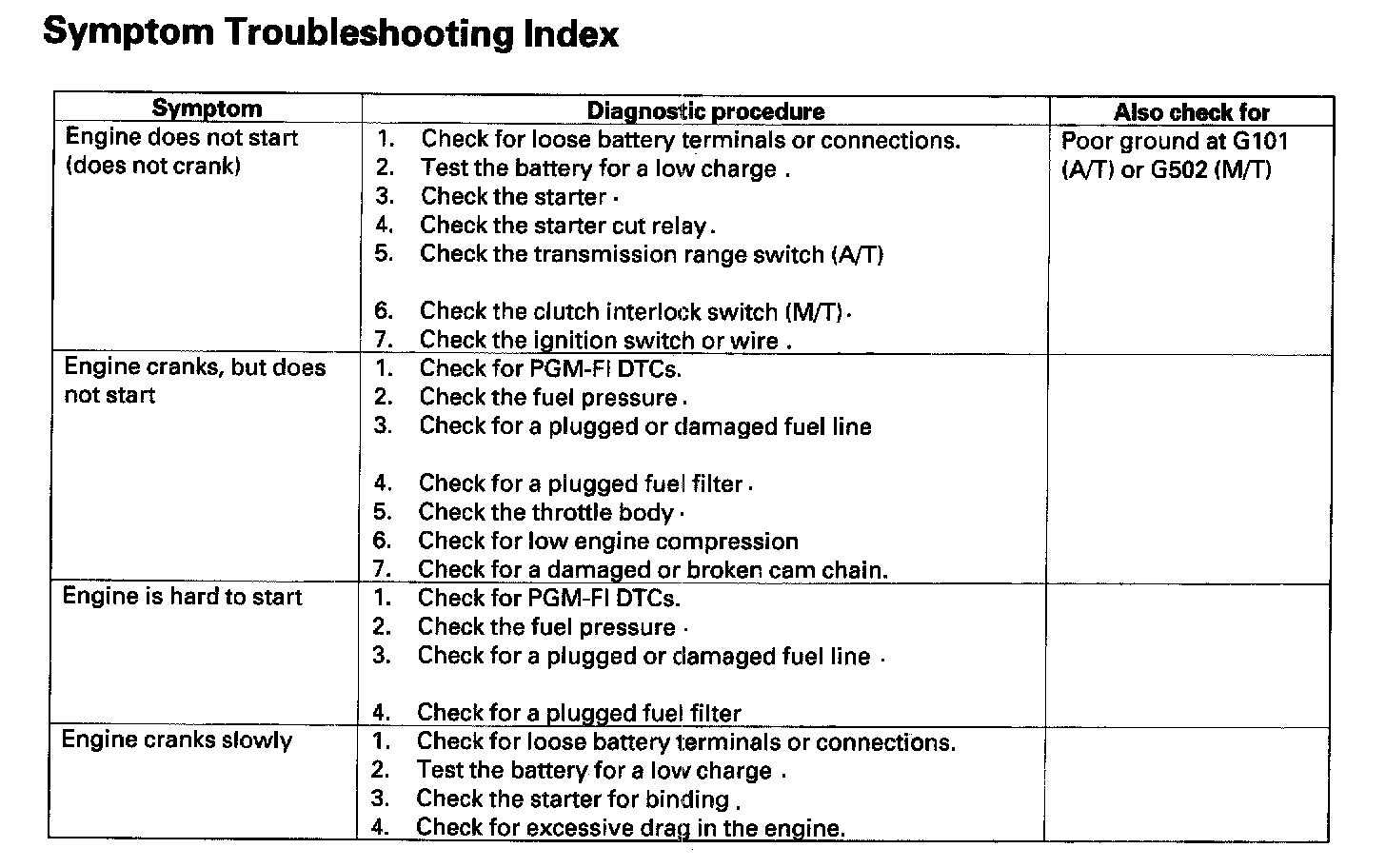 Symptom Troubleshooting Index: