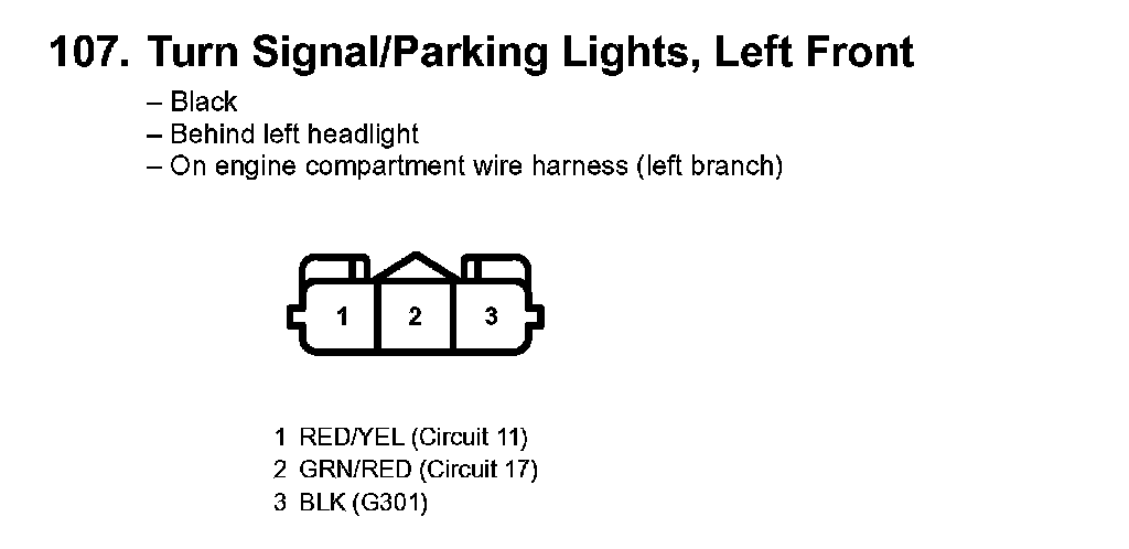 107. Turn Signal/Parking Lights, Left Front: