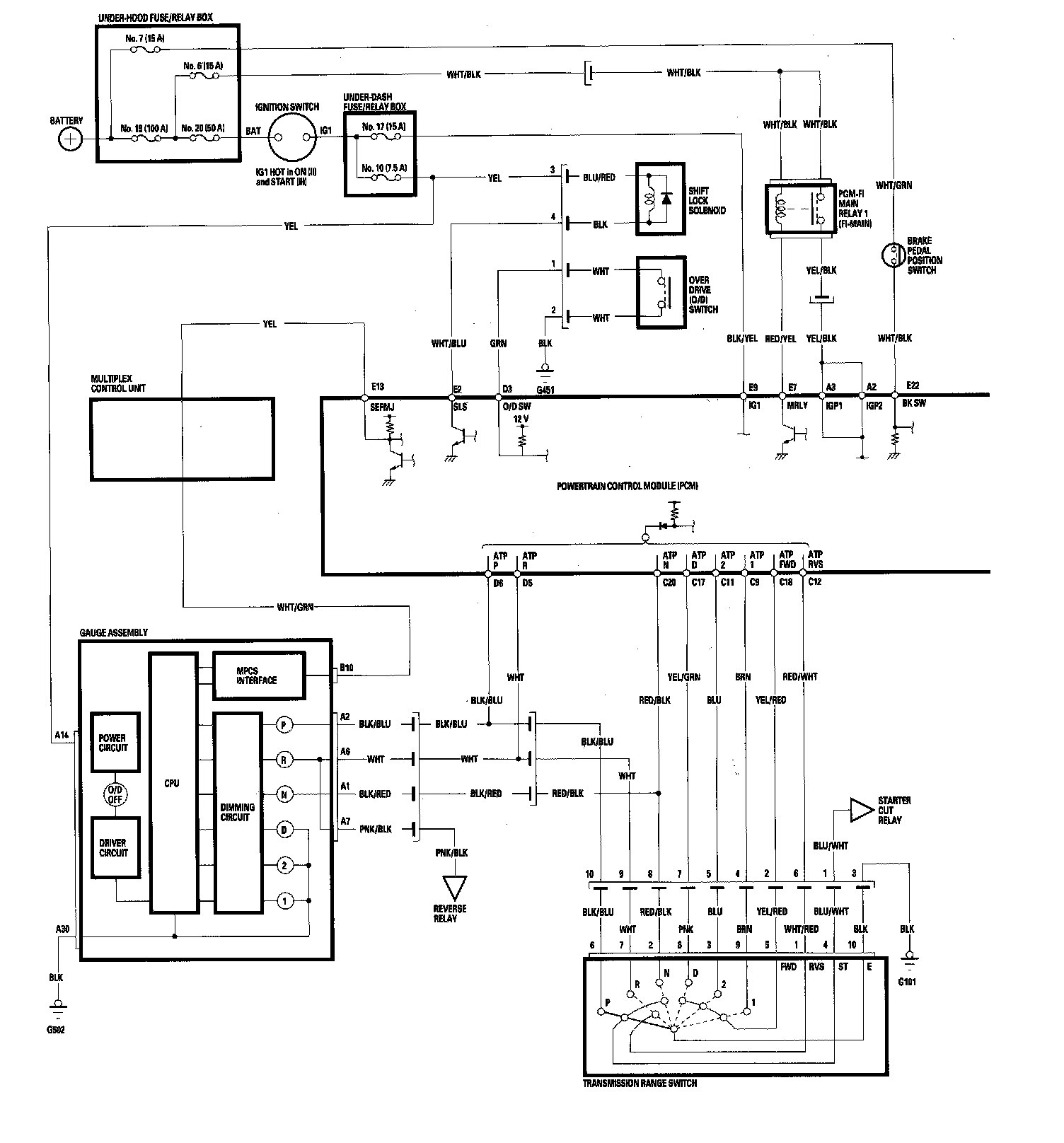 PCM A/T Control System Circuit Diagram (part 1):