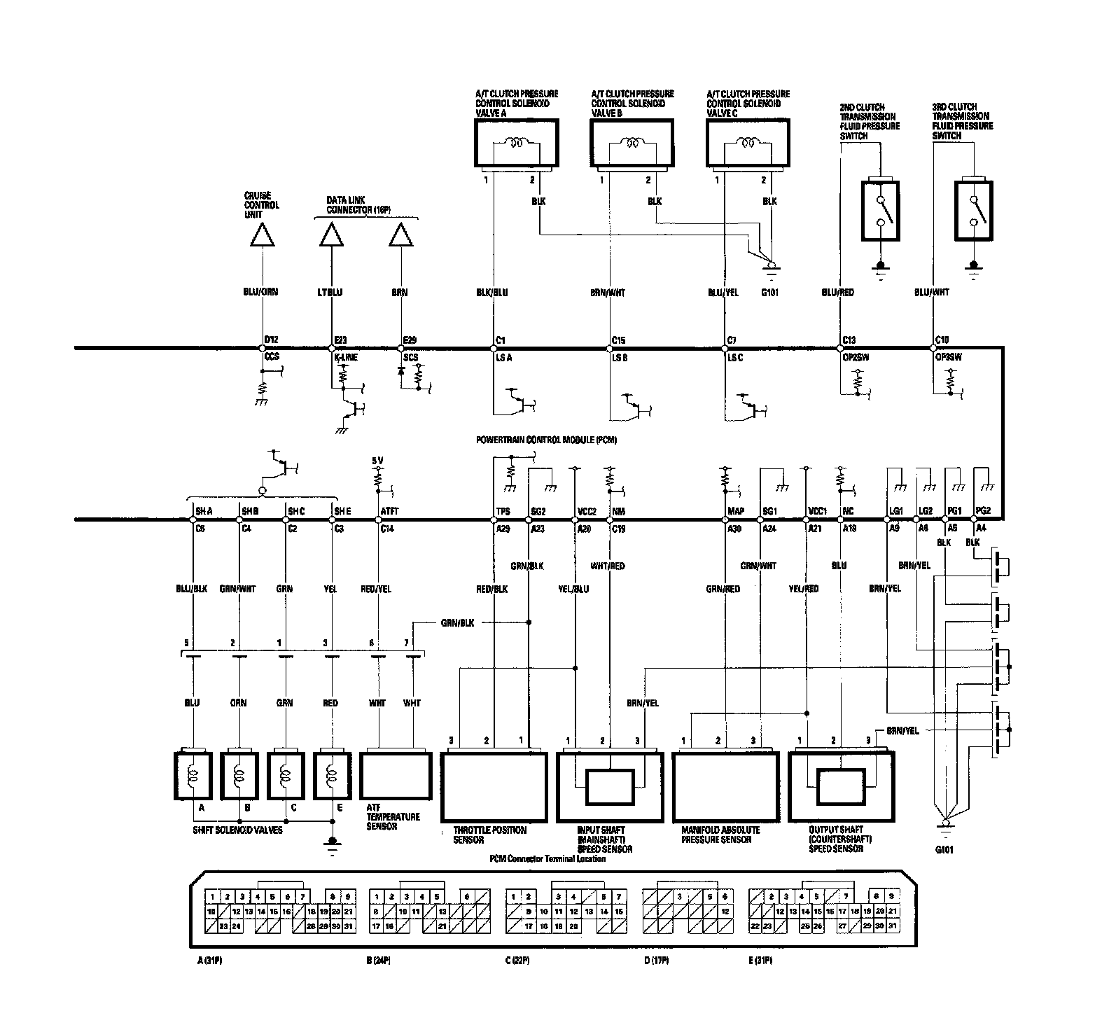 PCM A/T Control System Circuit Diagram