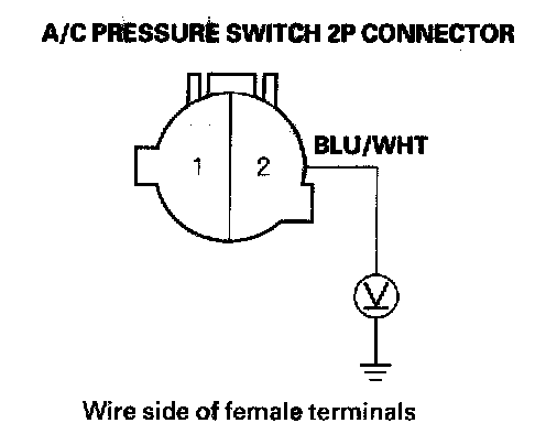 A/C Pressure Switch Circuit TroubleshootingNOTE: Do not use this troubleshooting procedure if any of these items are working properly with the A/C switch ON; A/C condenser fan, radiator fan and A/C compressor, or the heater does not work. Refer to the symptom troubleshooting index. Symptom Related Diagnostic Procedures