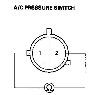 7. Check for continuity between the No. 1 and No. 2 terminals of the A/C pressure switch.