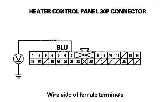11. Measure the voltage between the No. 7 terminal of the heater control panel 30P connector and body ground.
