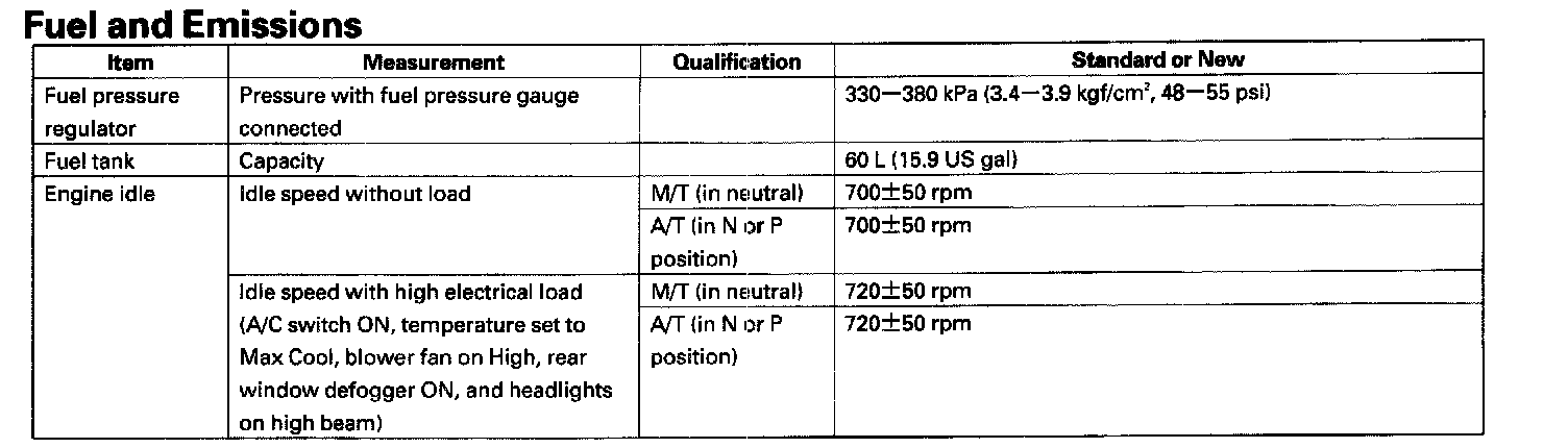 Standards And Service Limits - Fuel And Emissions:
