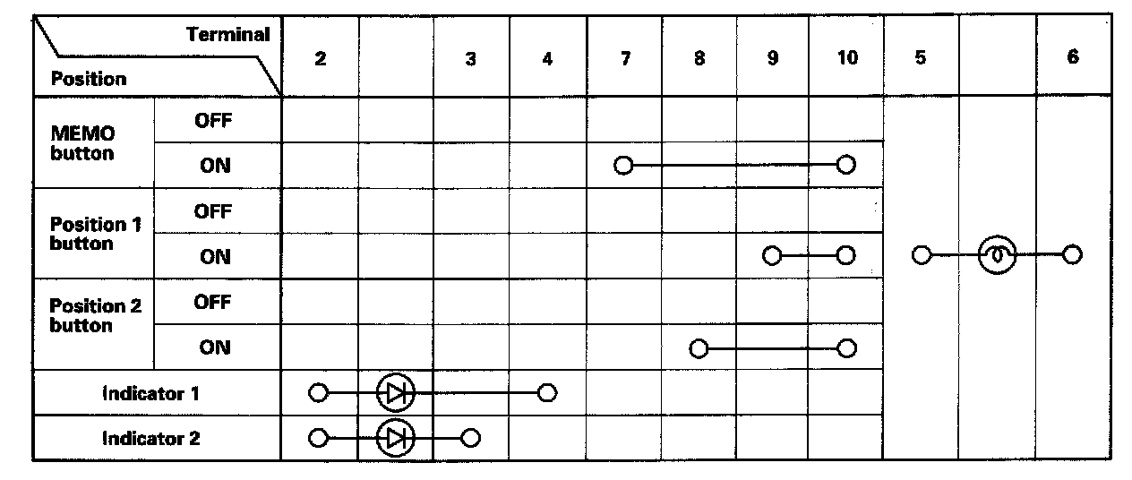 4. Check for continuity between the terminals in each switch position according to the table.