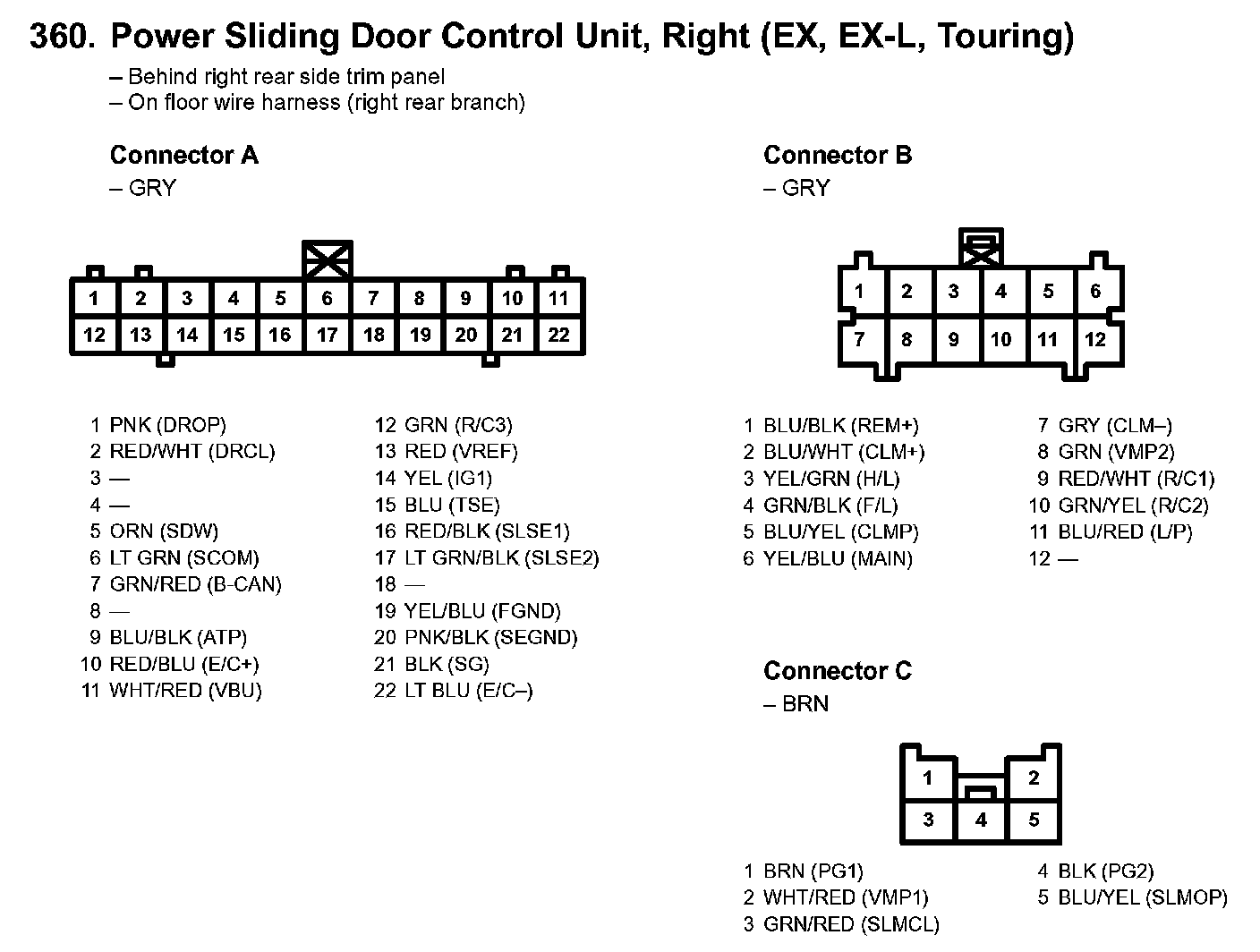 360. Power Sliding Door Control Unit, Right (EX, EX-L, Touring):