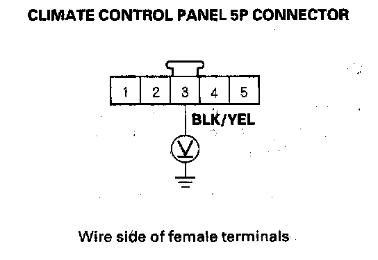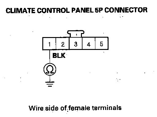 6. Check for continuity between the No. 1 terminal of the climate control panel 5P connector and body ground.