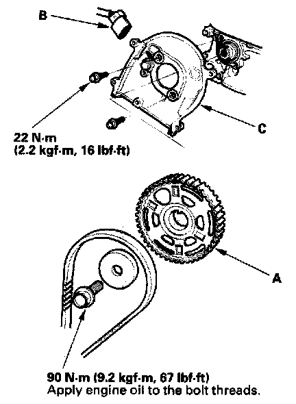 3. Disconnect the CMP sensor connector (B), then remove the back cover (C).