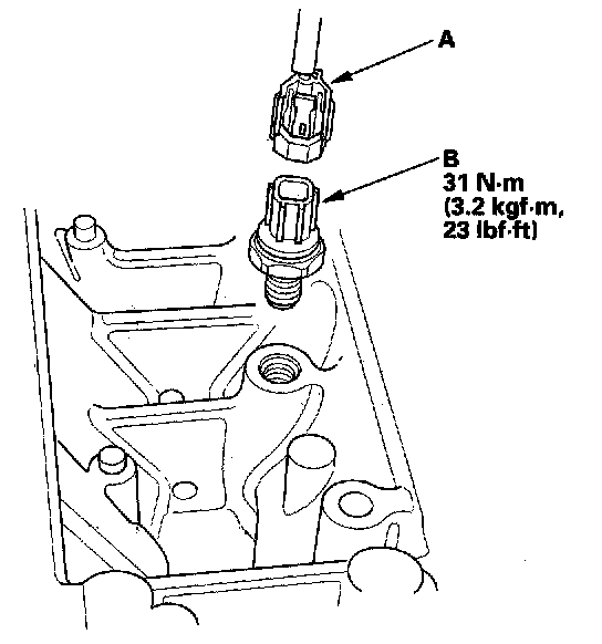 3. Disconnect the knock sensor 1P connector (A), then remove the knock sensor (B).