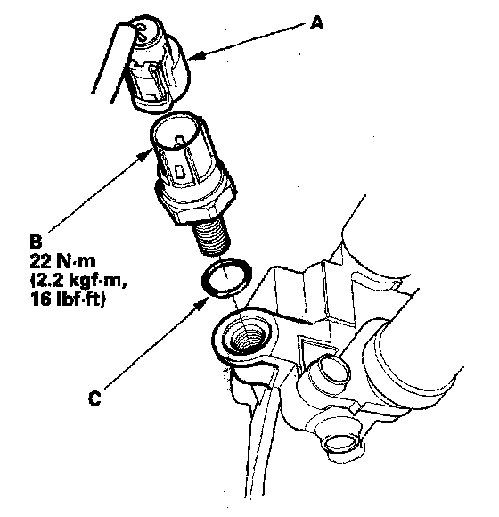 2. Install the switch in the reverse order of removal with a new O-ring (C).