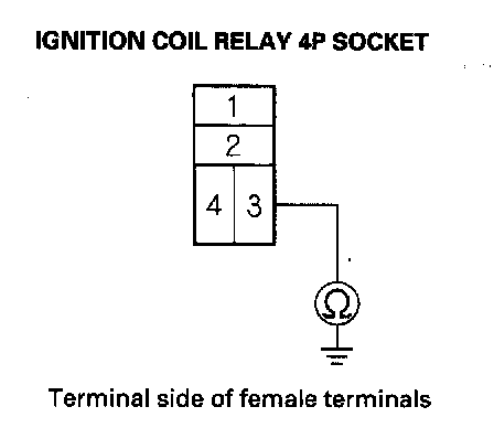 7. Check for continuity between ignition coil relay 4P socket terminal No. 3 and body ground.