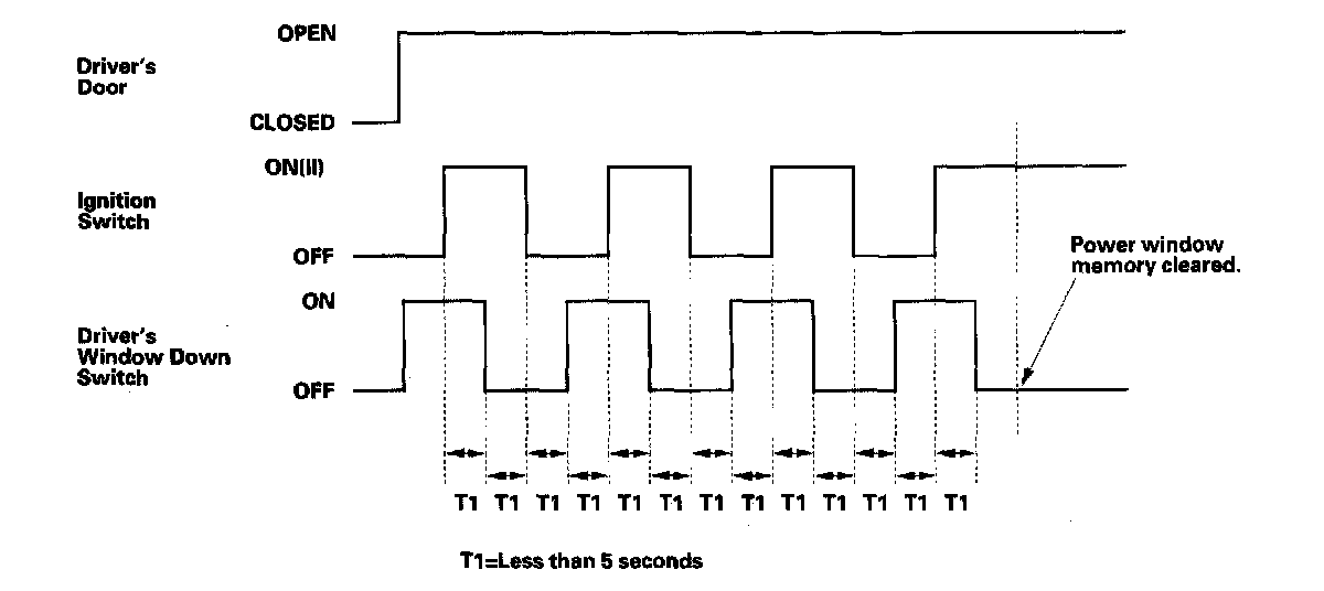 If the window still does not work in AUTO, repeat the procedure several times, paying close attention to the 5 second time limit between steps. If it still does not work, go to B-CAN System Diagnosis Test Mode A. Troubleshooting - B-CAN System Diagnosis Test Mode A