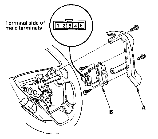 2. Remove the cover (A), then remove the set/decel, resume/accel, cancel switch (B).