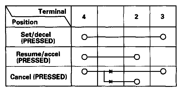 - If there is continuity, and it matches the table, but switch failure occurred on the cruise control input test, check and repair the wire harness on the switch circuit.