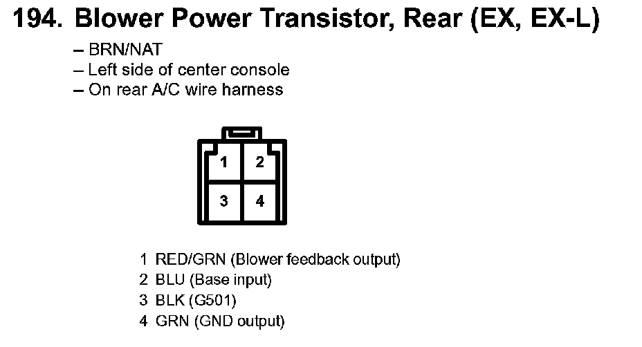 194. Blower Power Transistor,Rear (EX, EX-L):