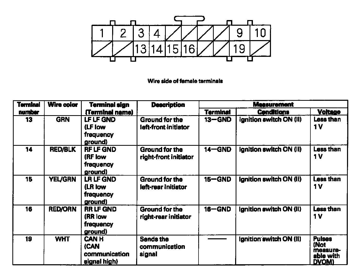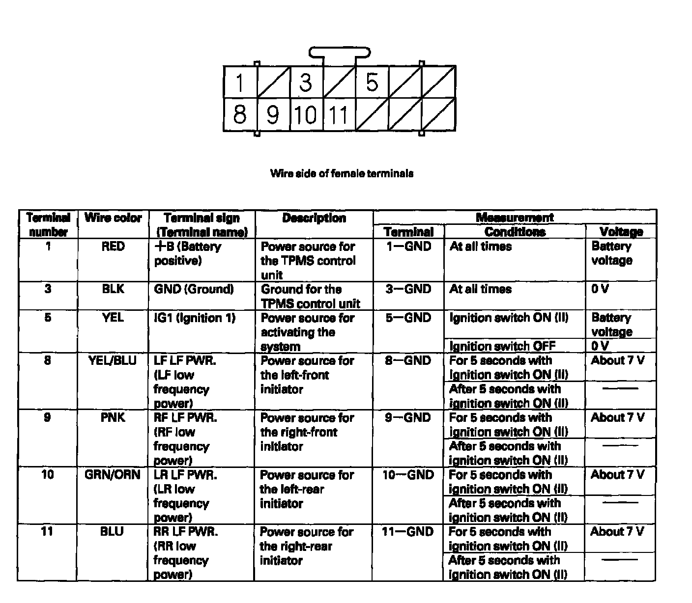TPMS Control Unit Inputs and Outputs for Connector A (14P):