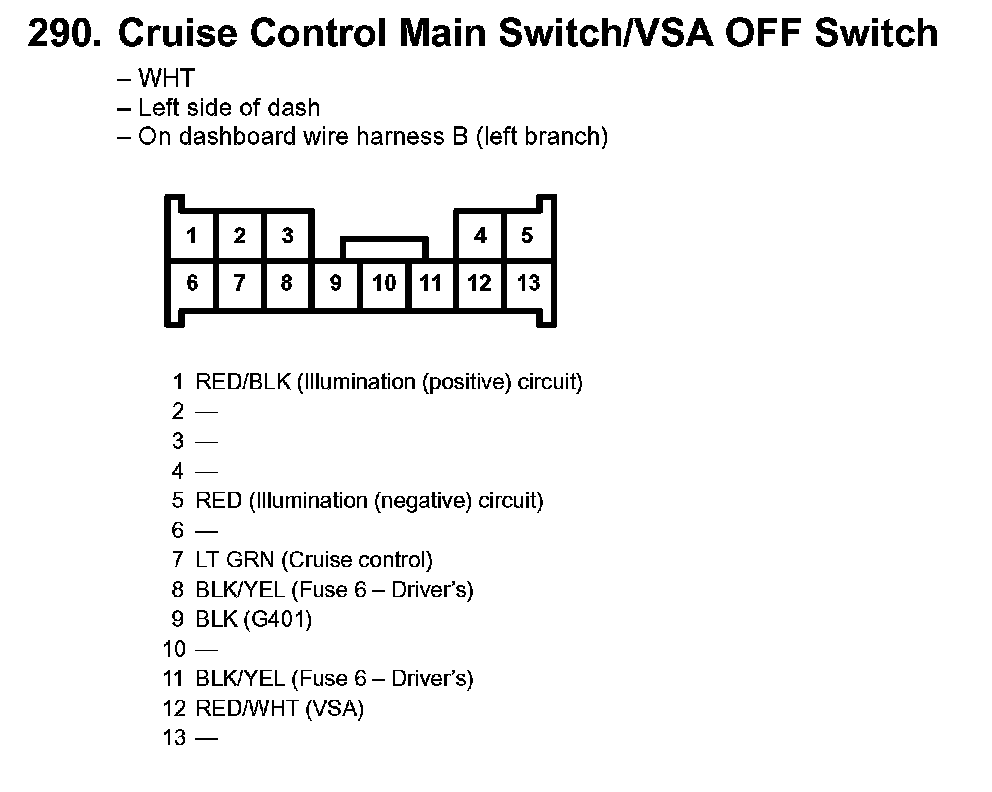 290. Cruise Control Main Switch/VSA OFF Switch: