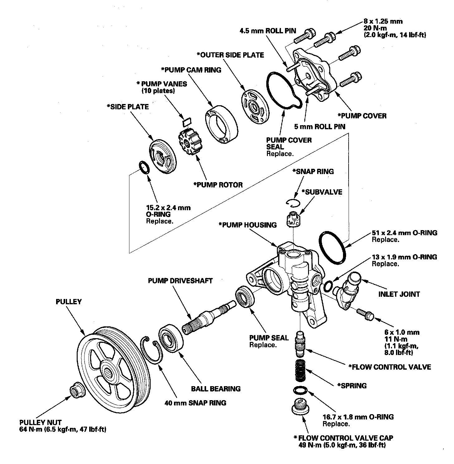 Replace the pump as an assembly if the parts indicated with asterisk (*) are worn or damaged.