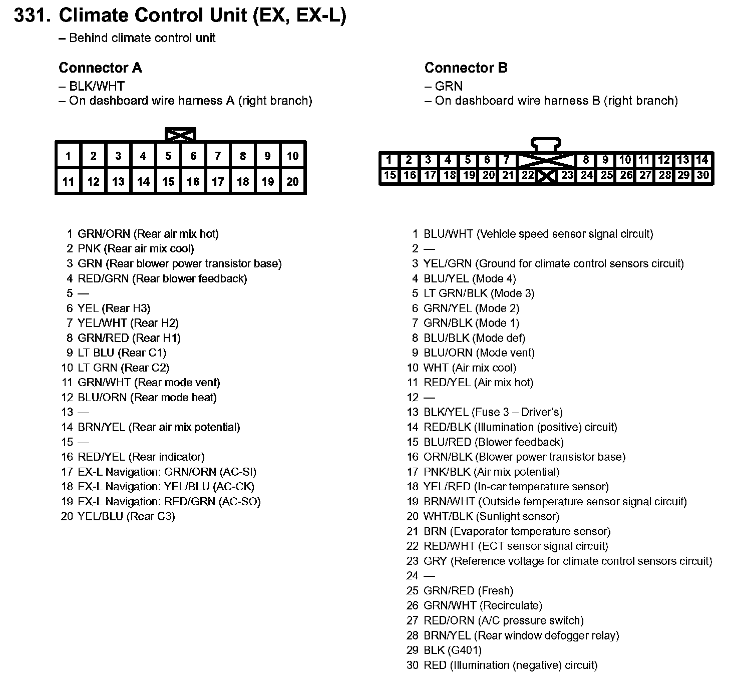 331. Climate Control Unit (EX, EX-L):