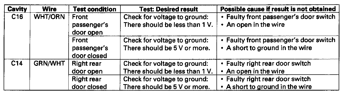 13. If all the input tests prove OK, one of the control units must be faulty. Substitute a known-good control unit for the one that is most likely at fault,then recheck the system. If the system works properly, the original control unit is faulty; replace it. If there is still a malfunction, substitute a known-good control unit for the next most likely unit to be at fault, and recheck. If the system works properly, the original unit is faulty; replace it.
