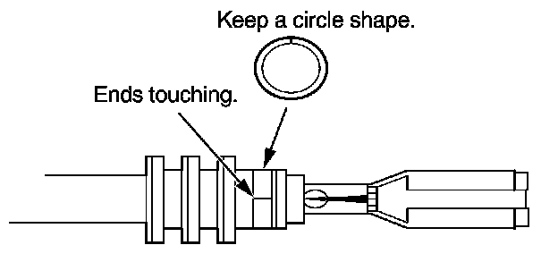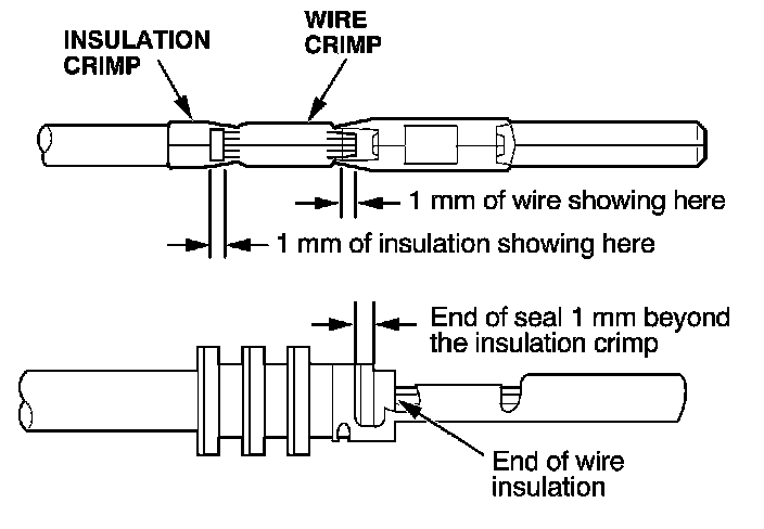 3. Strip the insulation off the end of the wire so the wire fits in the new terminal as shown. (If the wire has a wire seal, replace it with a new one from the kit.)