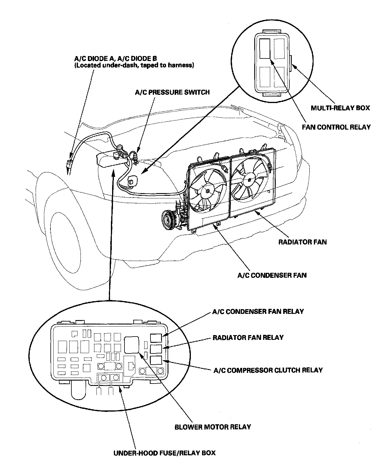 Radiator Cooling Fan Control Module Relay: Locations