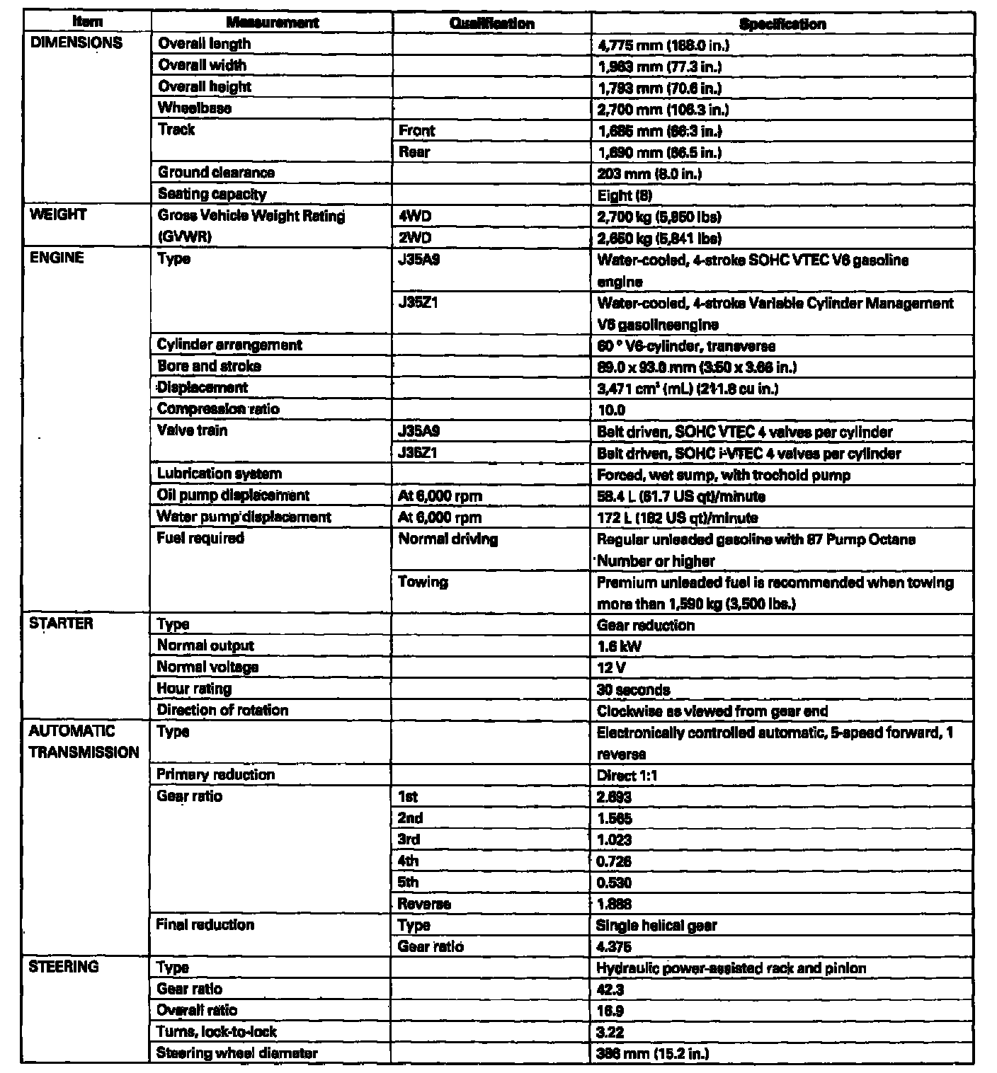 Pilot 2WD V6-3.5L