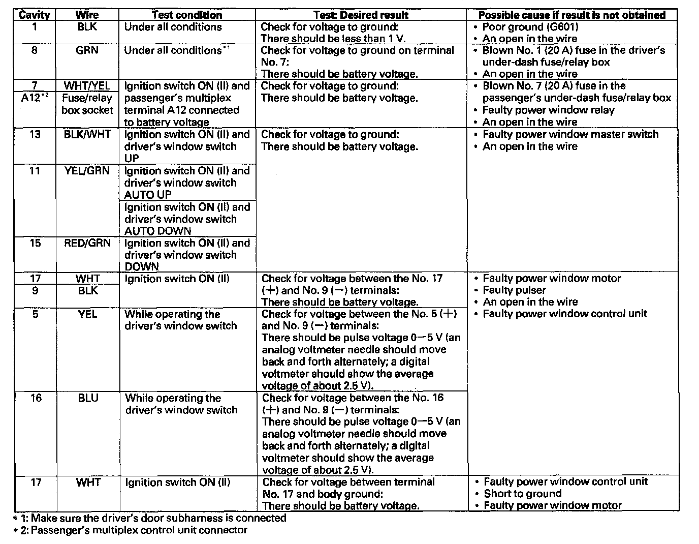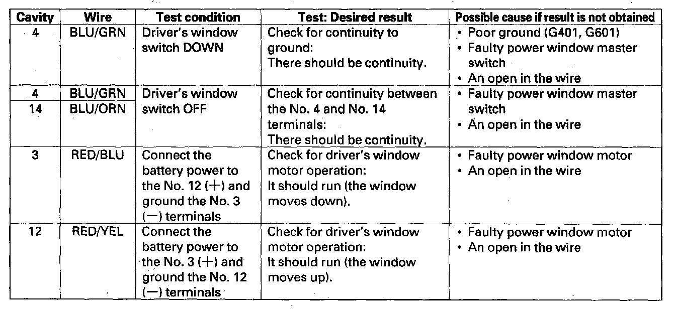 Power Window Control Unit Input Test