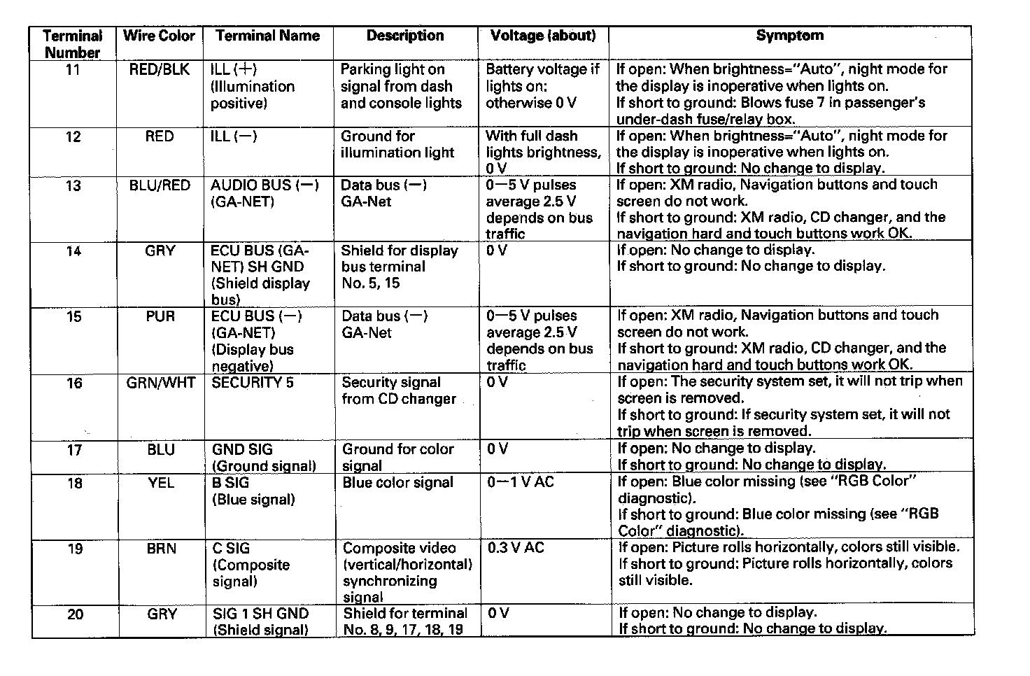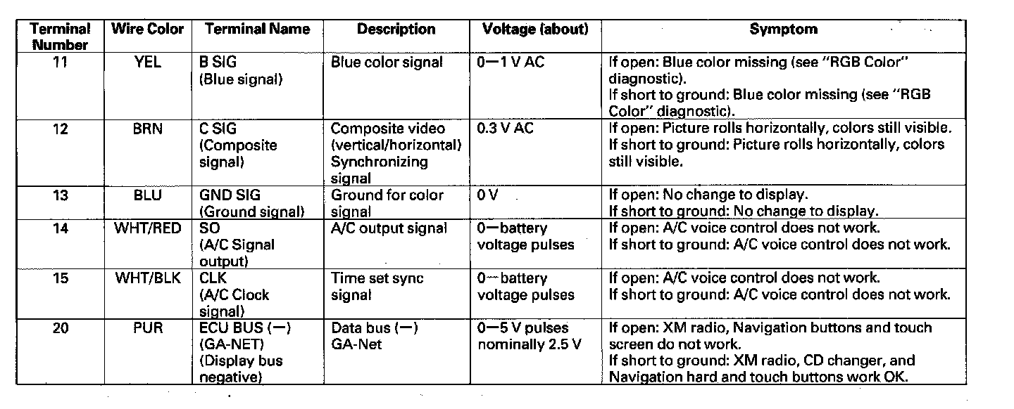 Navigation Unit Inputs And Outputs For Connector A (20P) Part 2: