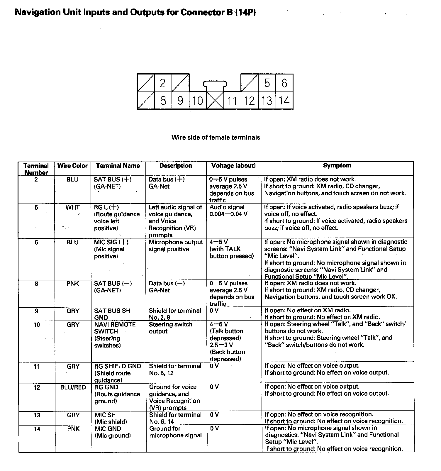 Navigation Unit Inputs And Outputs For Connector B (14P):