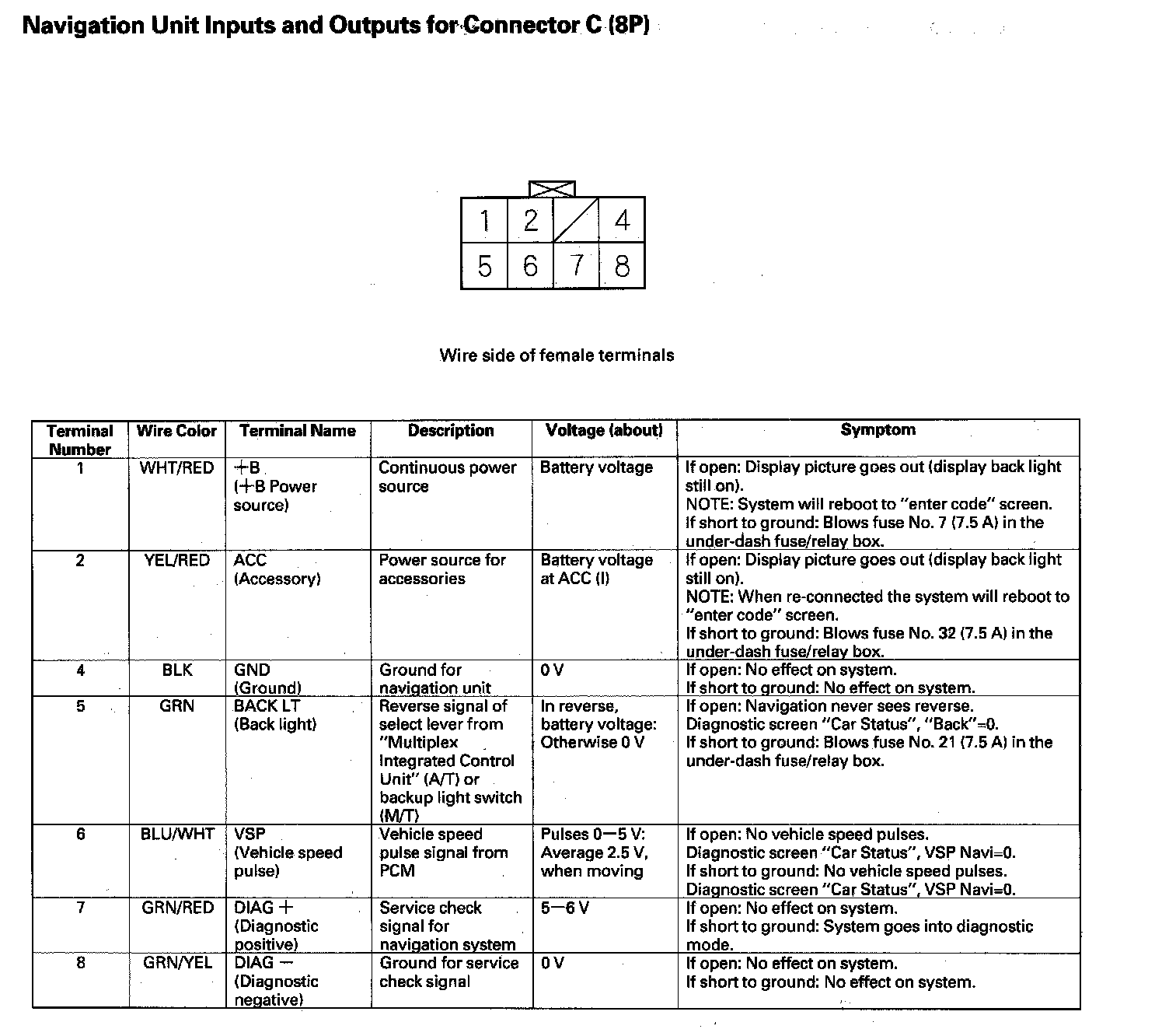 Navigation Unit Inputs And Outputs For Connector C (8P):