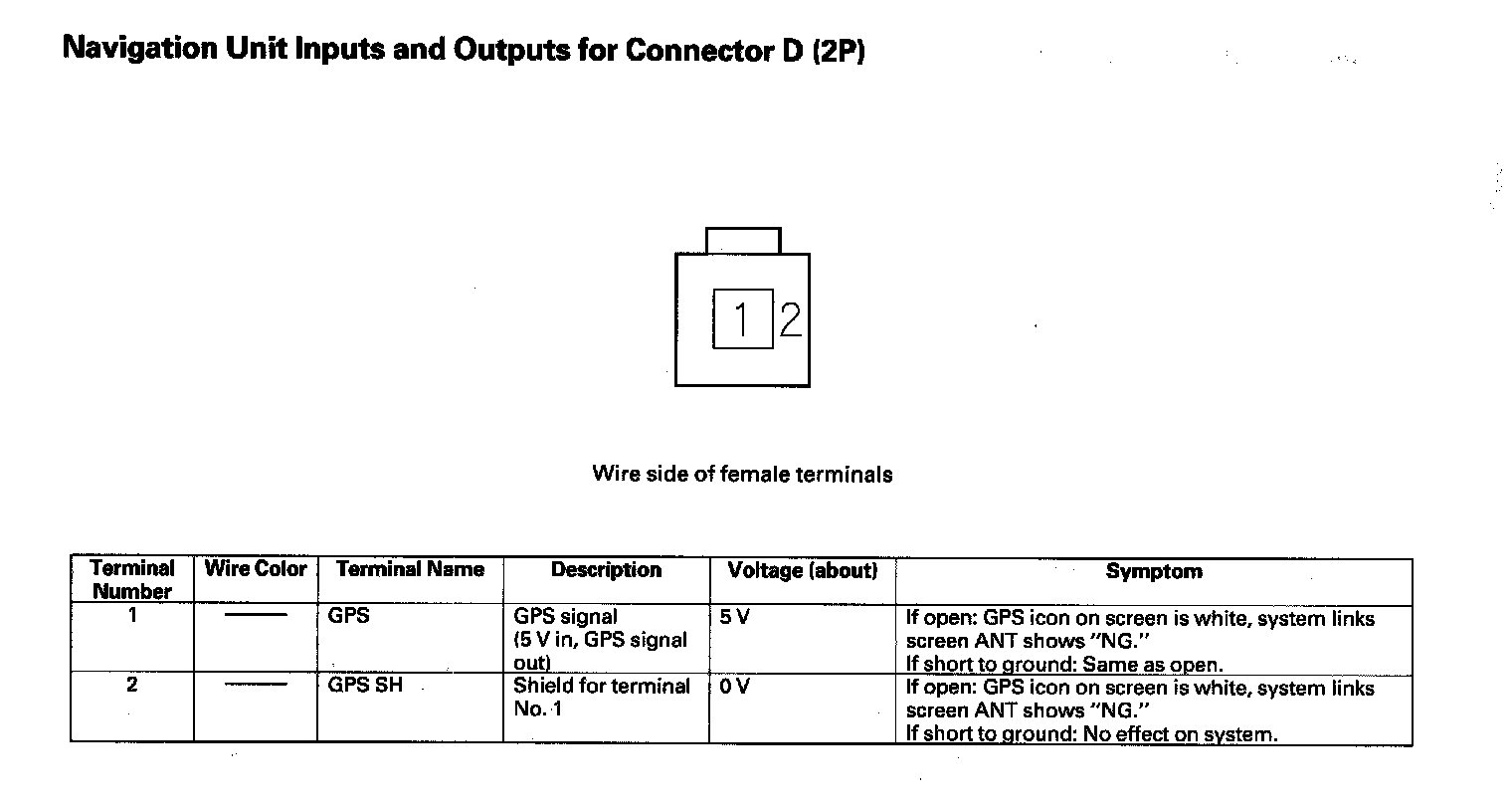 Navigation Unit Inputs And Outputs For Connector D (2P):