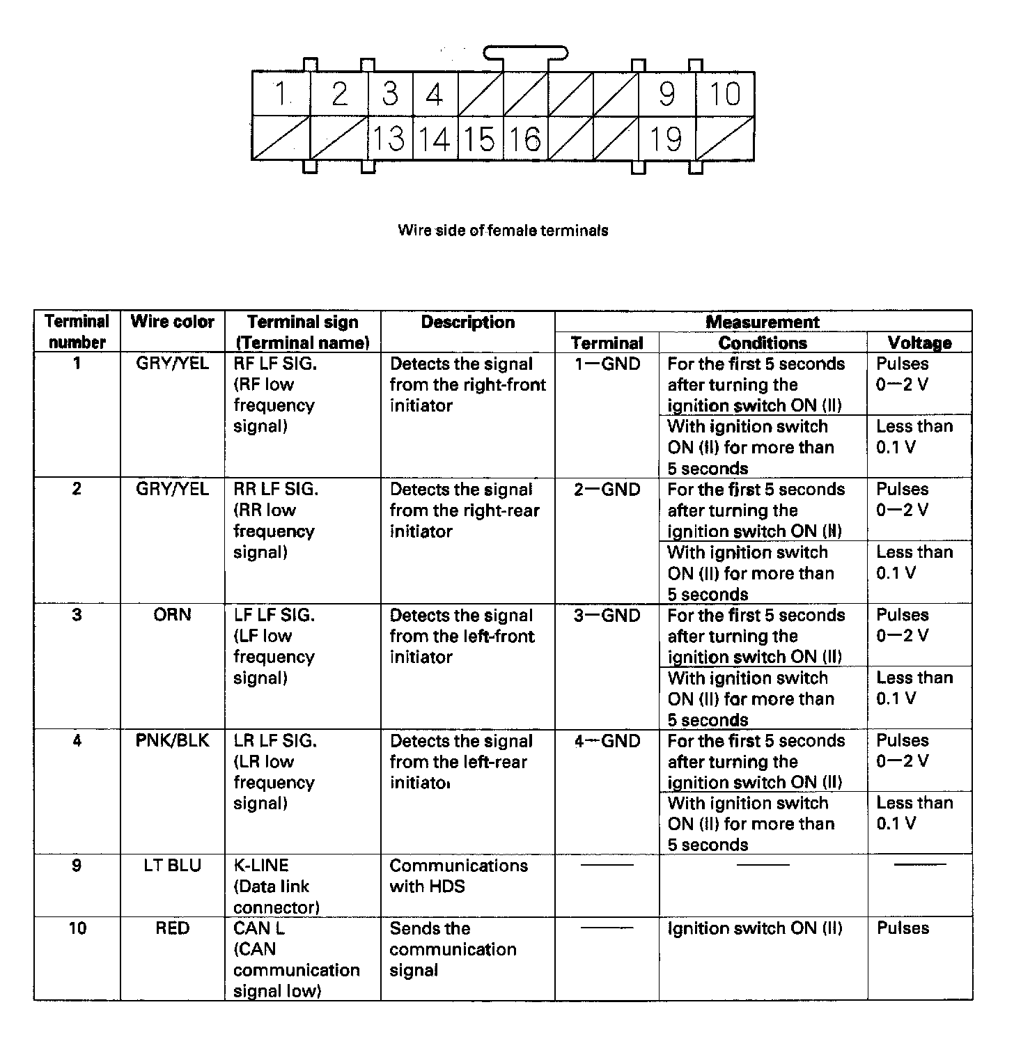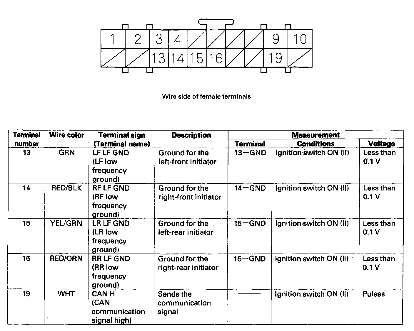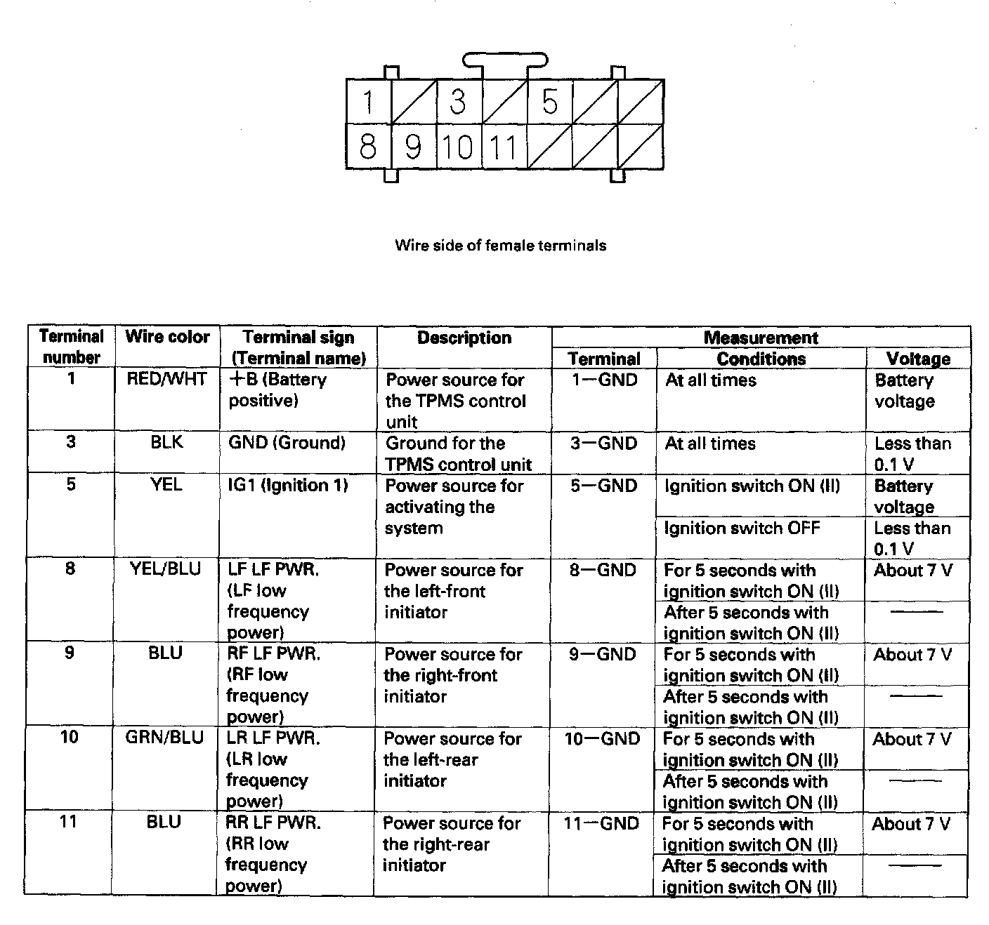 TPMS Control Unit Inputs and Outputs for Connector A (14P):