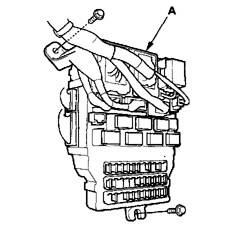 4. Disconnect the connectors from the fuse side of the under-dash fuse/relay box (A).