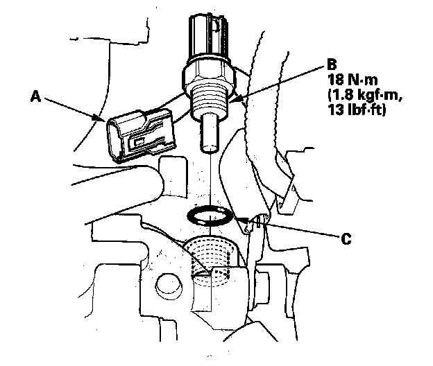 5. Install the sensor in the reverse order of removal with a new O-ring (C), then refill the radiator with engine coolant.