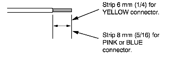 7. If you are using a yellow splice connector, strip about 6 mm (1/4 inch) of insulation off the ends of both wires. If you are using a pink or blue splice connector, strip off about 8 mm (5/16 inch) of insulation.