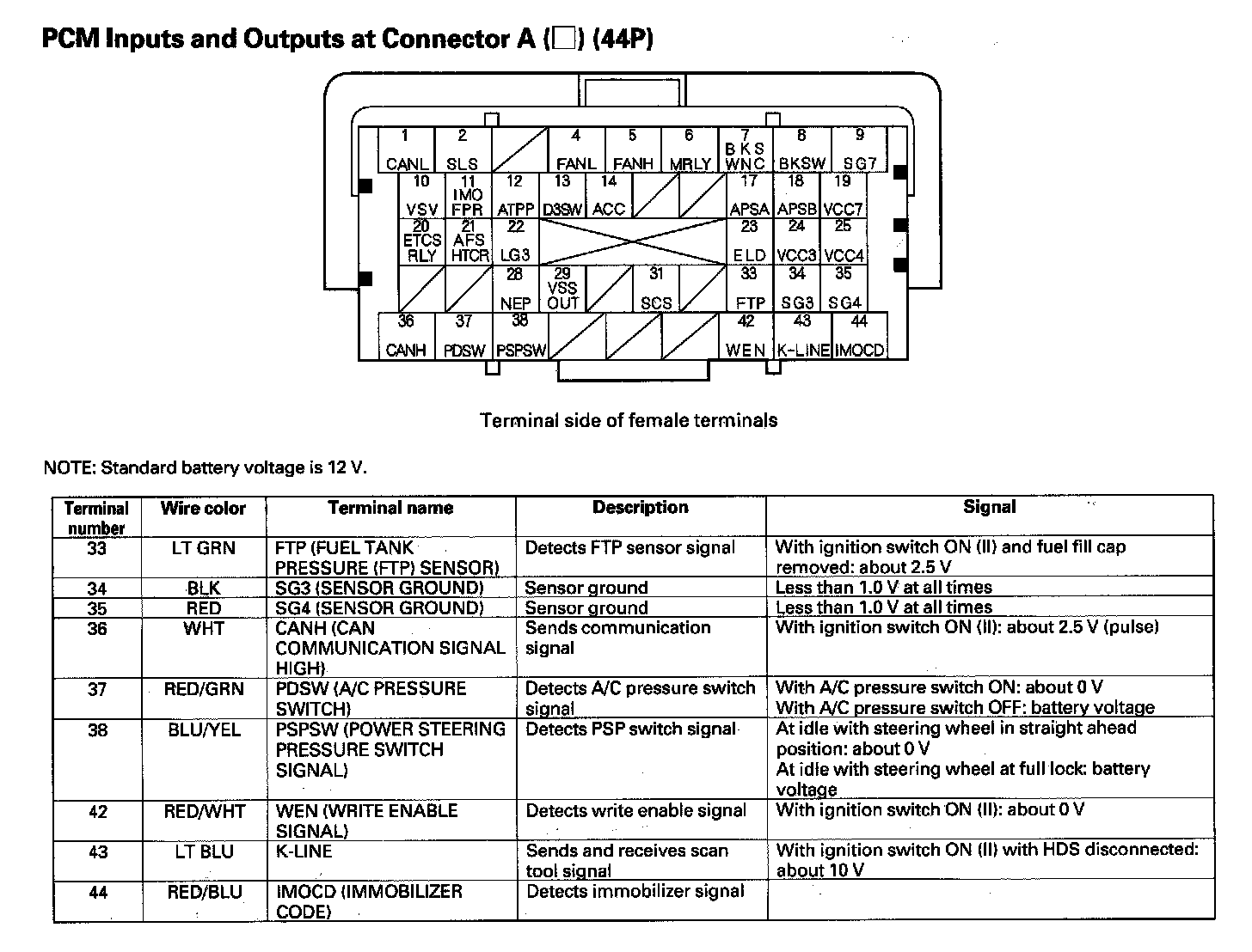 PCM Inputs and Outputs at Connector A (44P) Part 2: