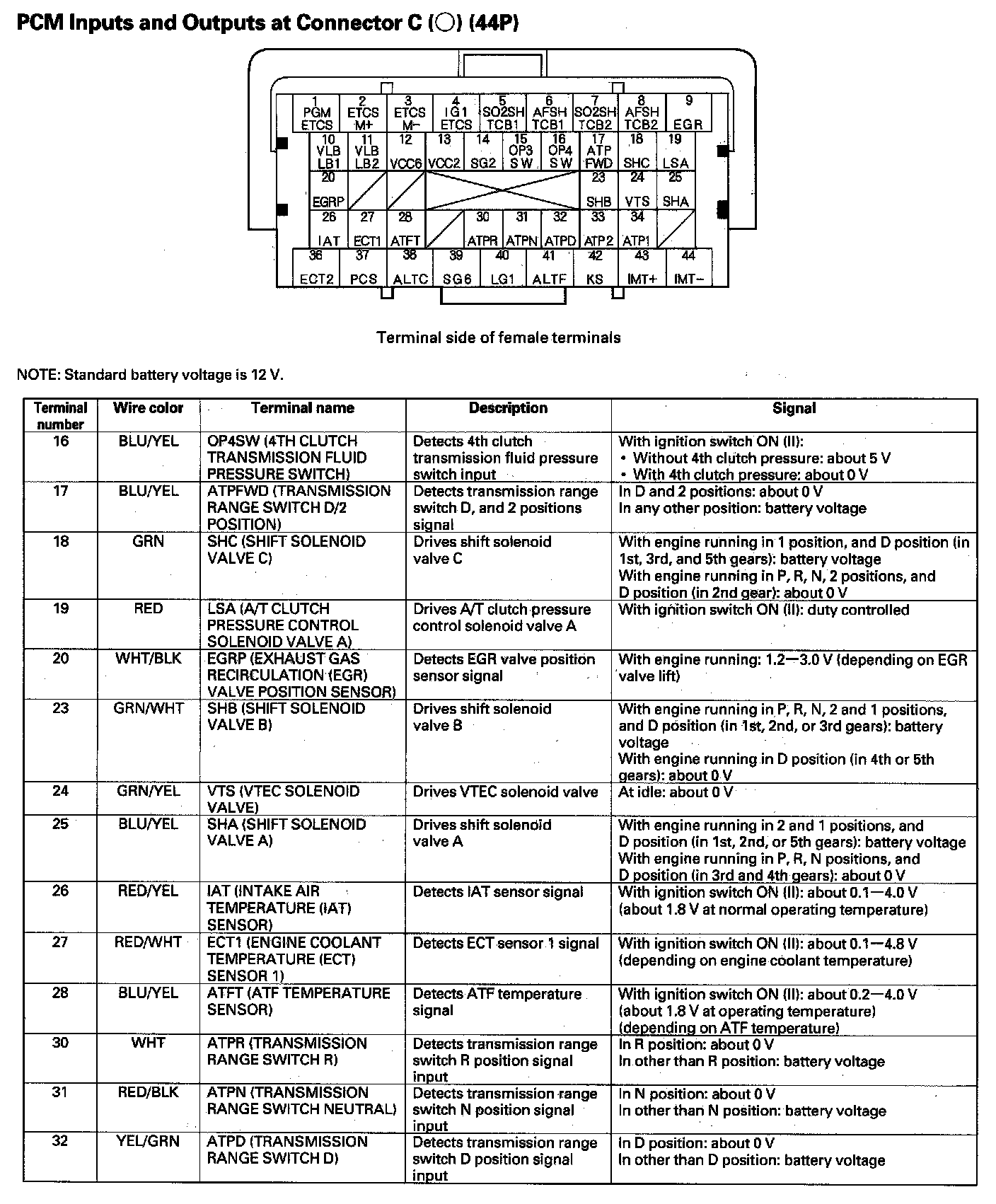 PCM Inputs and Outputs at Connector C (44P) Part 2: