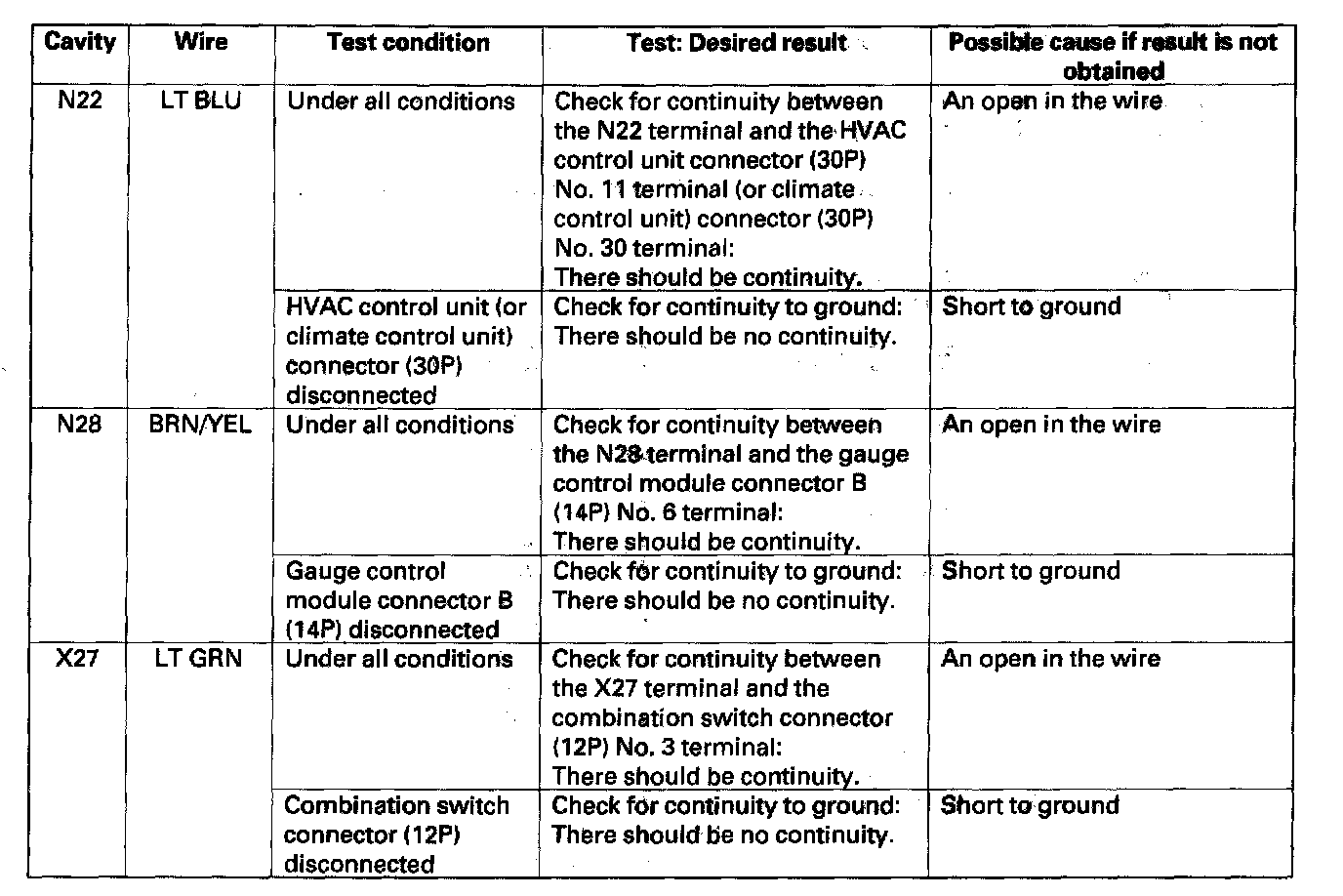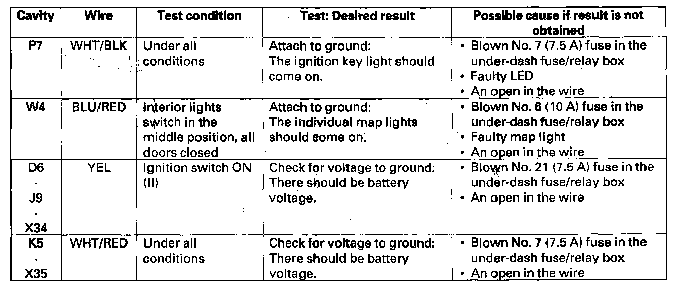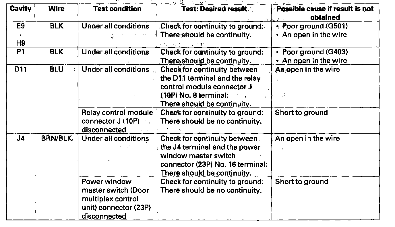 5. Reconnect the connectors to the driver's under-dash fuse/relay box, and make sure these input tests at the appropriate connectors on the driver's under-dash fuse/relay box.