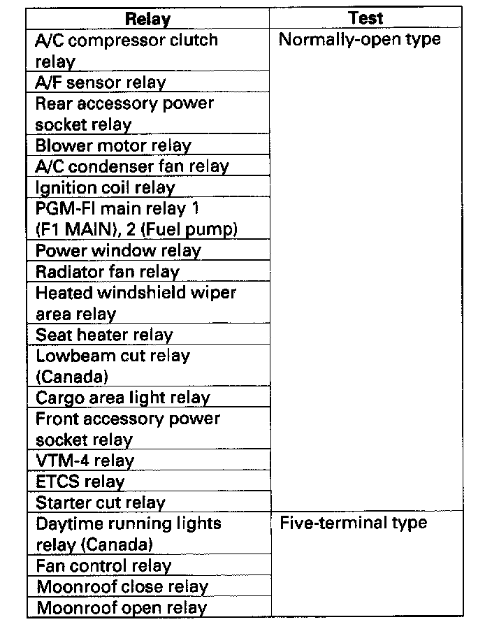 Main Relay (Computer/Fuel System): Testing and Inspection