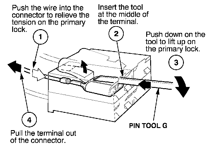 - If it has a secondary terminal lock, go to Connectors With a Secondary Lock. A secondary lock, found on most connectors on some models, is an additional locking device on the connector housing as a backup for the primary lock on the terminal.