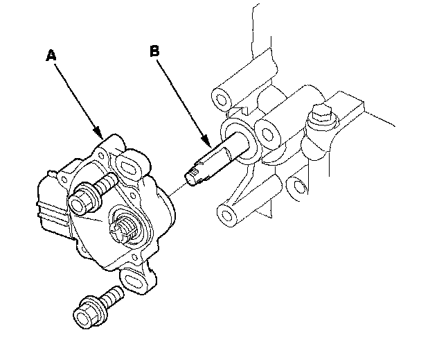 14. Install the transmission range switch (A) gently over the selector control shaft (B), and install the bolts loosely.