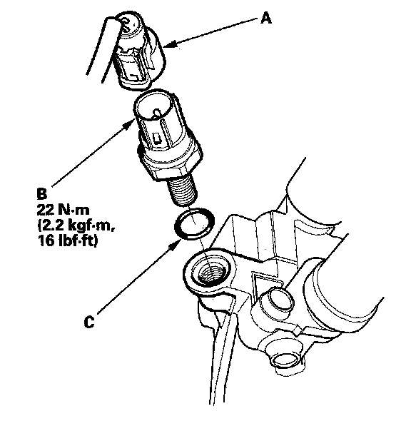 2. Install the switch in the reverse order of removal with a new O-ring (C).