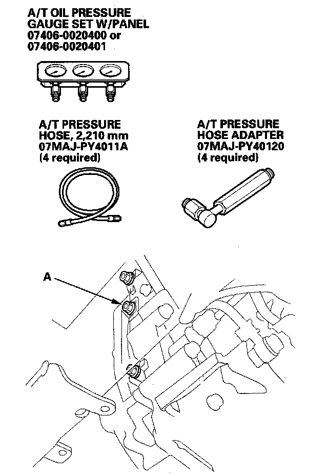 ^ A/T clutch pressure gauge set 07406-0020400 or 07406-0020401