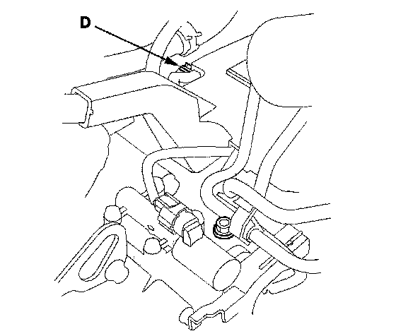 12. Remove the intake manifold cover and intake air duct, and connect the oil pressure gauge to the 2nd clutch pressure inspection hole (D). Then temporarily install the intake air duct.