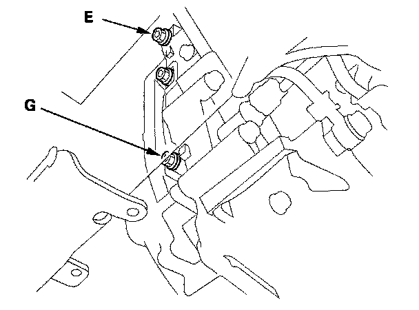 18. Connect the oil pressure gauge to the 3rd clutch pressure inspection hole (E) and the 5th clutch pressure inspection hole (G).