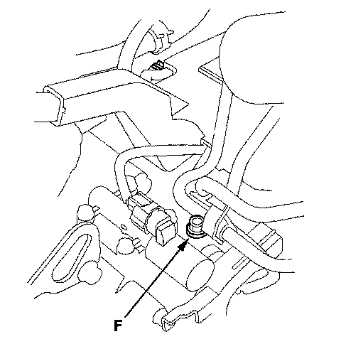 19. Connect the oil pressure gauge to the 4th clutch pressure inspection hole (F).