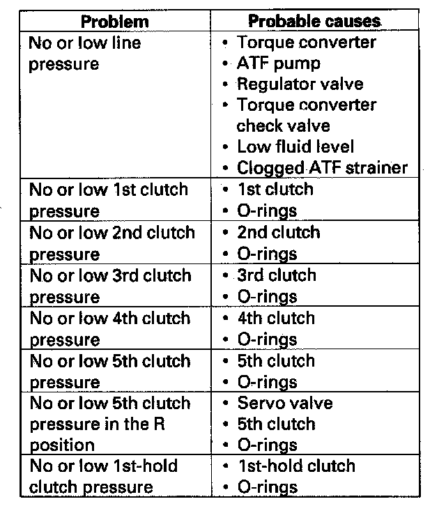 1. Before testing, make sure the transmission fluid is filled to the proper level.