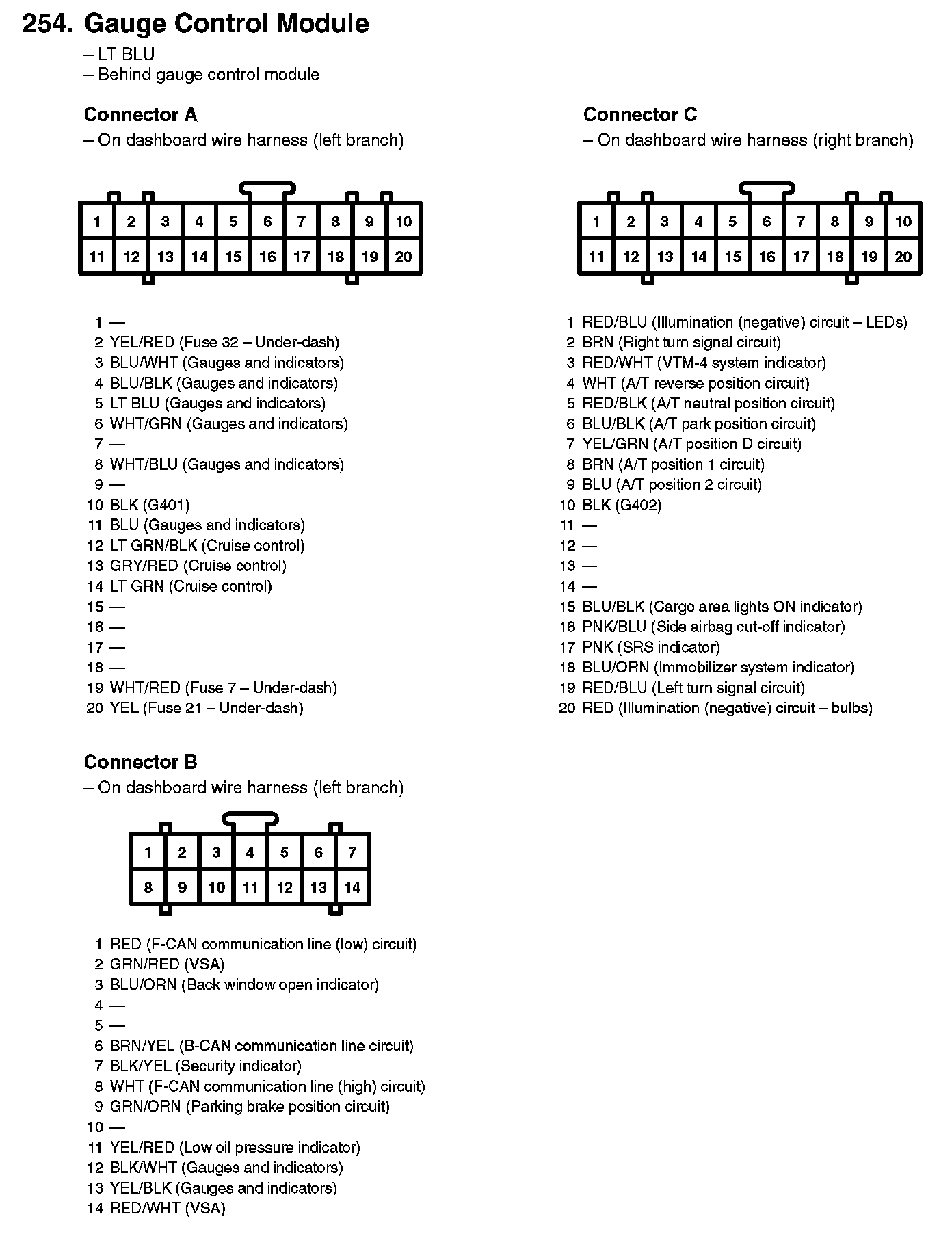 254. Gauge Control Module: